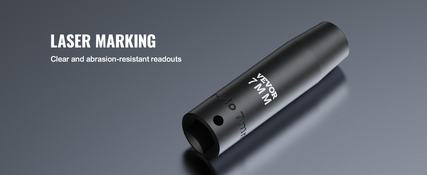 Using laser etching and rolling processes, the extra-large size markings on the sockets are clear and easy to identify even under various lighting conditions. The markings are also resistant to wear.