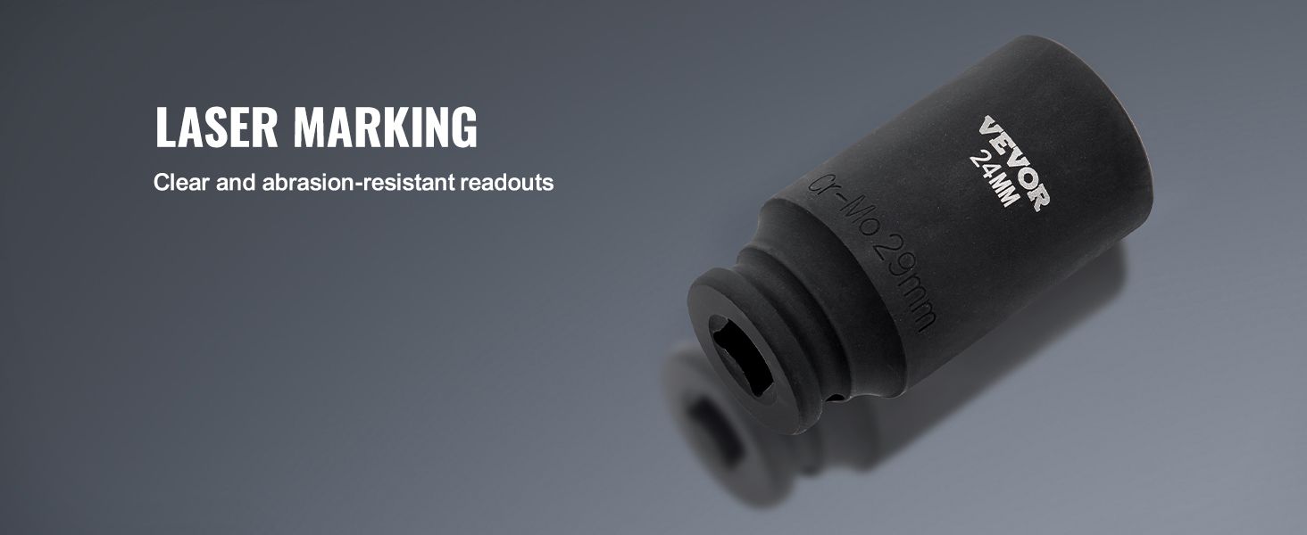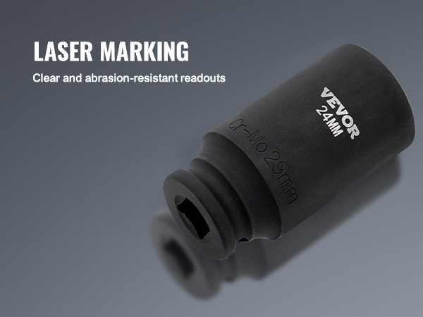Using laser etching and rolling processes, the extra-large size markings on the sockets are clear and easy to identify even under various lighting conditions. The markings are also resistant to wear.