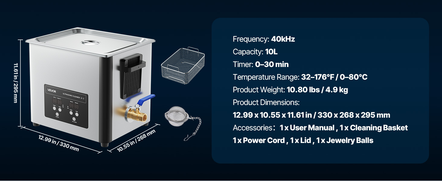 This ultrasonic cleaner seems to be a really good quality product. I’ve never owned one before, but have many things that could be cleaned with it (jewelry, coins, tools, etc). This is one of the smaller models that Vevor makes, but I found the capacity to be perfect for most household items I have to clean. Everything fit well in the provided basket. The directions are clear, and the machine is easy to use. The heat setting works well to ensure the water is hot for better cleaning. My only downside is the noise. It is so loud, and high pitched. The dog did not like it at all. Would be good to just use in the garage. Overall, it works well, and I think it’s a good value product.
