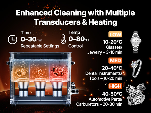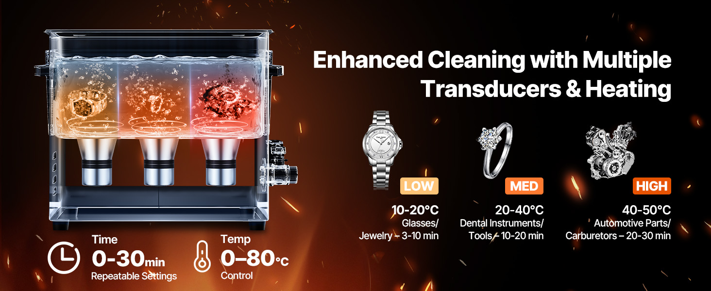 - Suitable for Multiple Materials: Ideal for jewelry, watches, electronic components, or industrial parts with heavy oil stains. Adjustable cleaning temperatures from 0–80°C accelerate the dissolution of dirt, providing a more efficient and targeted clean.