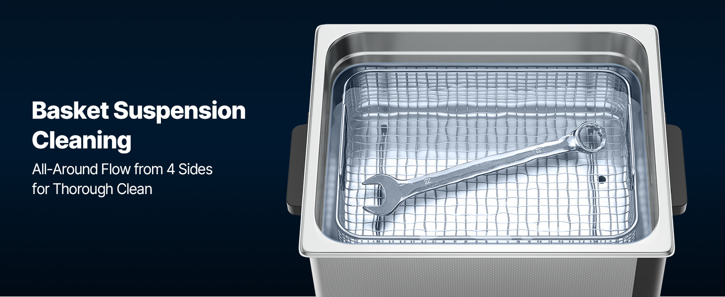 - Premium Quality Design: The sonic cleaner features a corrosion-resistant stainless steel basket and inner tank, with the basket designed to prevent scratches. The upgraded handle facilitates easy transport of a full tank, and the digital display ensures simple, precise operation.