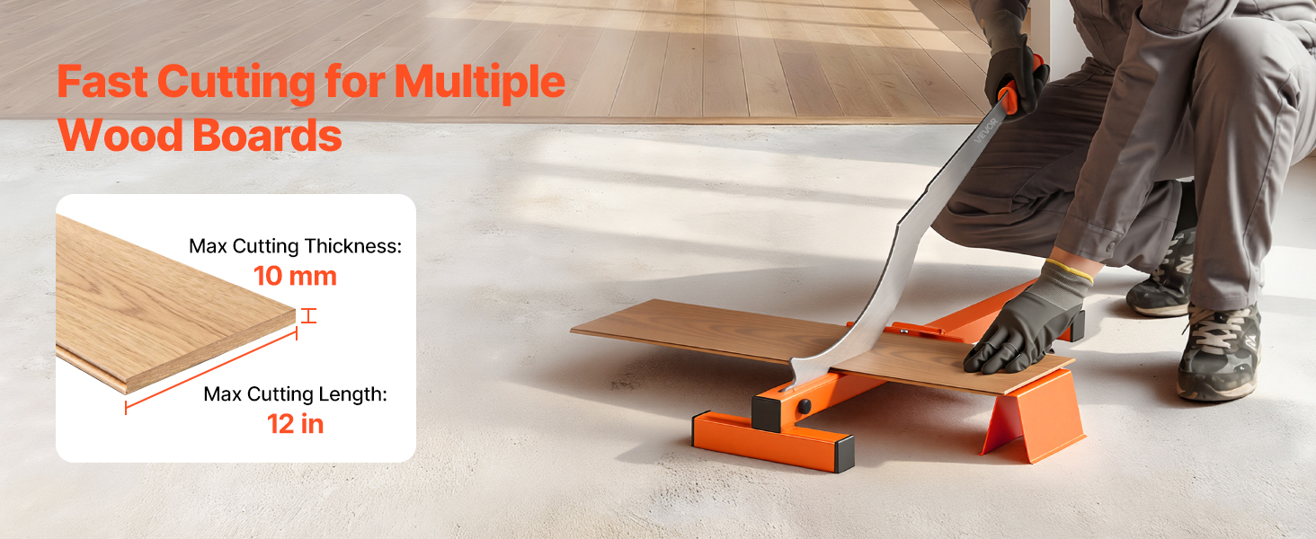 - Wide Cutting Capacity: This vinyl floor cutter handles boards up to 10 mm thick and supports cuts up to 12 inch / 304.8 mm long, making it suitable for most home flooring renovation tasks