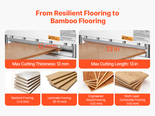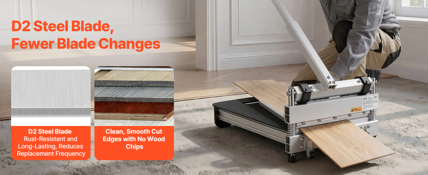 - Multi-Floor Compatibility: As a laminate floor cutter, it cuts resilient flooring (PVC, LVT, VCT), laminate flooring, engineered hardwood, and multi-layer composite flooring. Meets your flooring renovation needs in different spaces