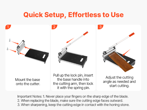 With partially preassembled components, this vinyl plank flooring cutter (or vinyl floor cutting tool) requires only a few simple steps before it’s ready to use.