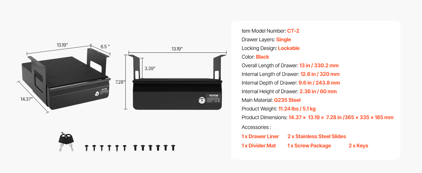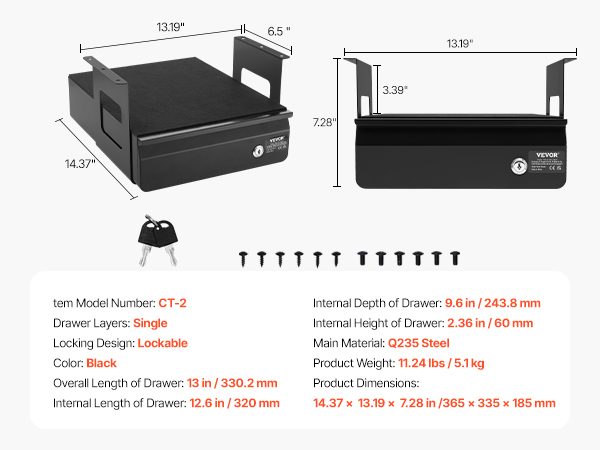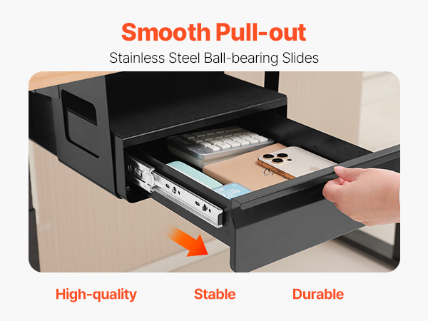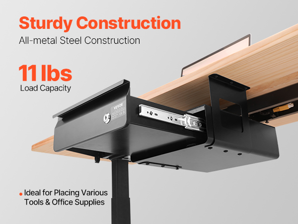 • Sturdy & Durable: This 13-inch desk drawer (single-layer weight capacity: 11 lbs; interior dimensions: 12.6" L, 9.6" D, 2.36" H) can be installed under your desk, expanding hidden storage space. The open-top shelf is ideal for quick-access items like an iPad or notebook. The drawer features a robust all-metal steel structure and a six-point mounting system for long-lasting security and stability.