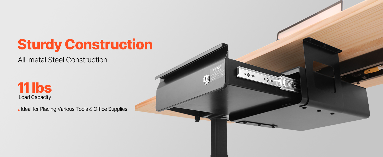 With an 11 lbs load capacity, this under desk drawer provides an ideal storage solution for organizing your office supplies. The lockable design ensures that your personal items stay secure. Whether at home or in the office, maintain a tidy workspace while keeping your belongings organized.