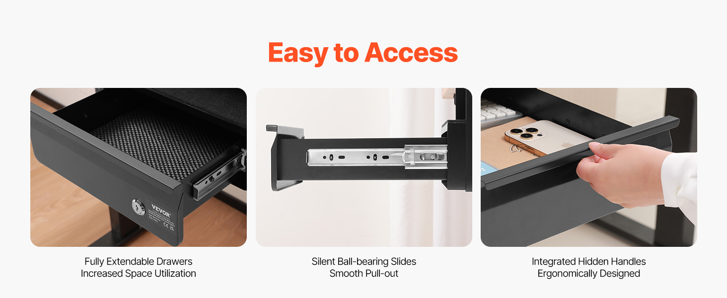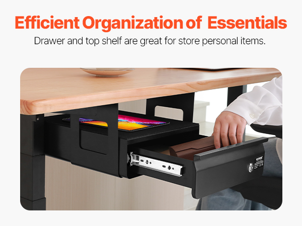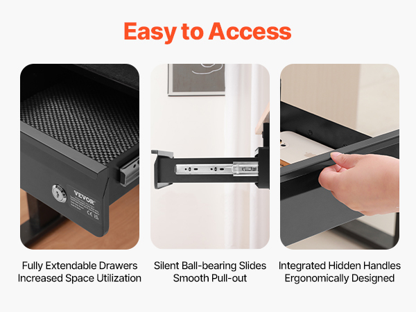 • Efficient Organization: Say goodbye to cluttered desktops! Store your most-used items or tools in this under-table drawer to keep your desk tidy and boost productivity. With an EVA drawer liner, your items are cushioned, reducing the risk of scratches. Simple assembly means you can follow our instruction manual and do it on your own. (For easier installation, it's recommended to flip the desk surface to secure the drawer, saving you effort.)