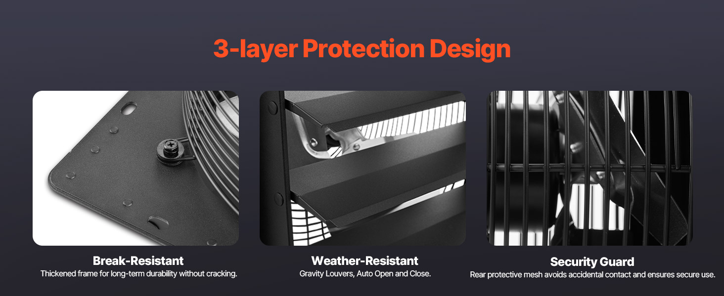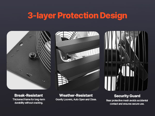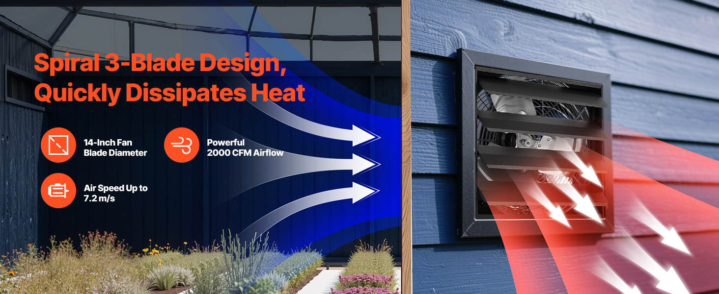 - Rapid Venting: This shutter exhaust fan delivers 4800 CFM to quickly expel stale air, floating dirt, heat, and smells, keeping indoor air fresh. Also works as a high-airflow exhaust fan for sheds and workshops