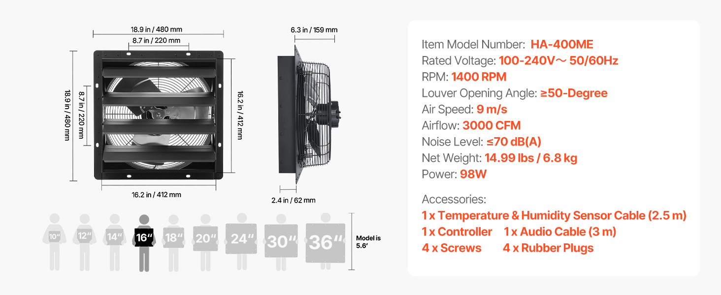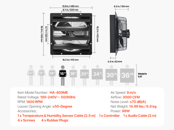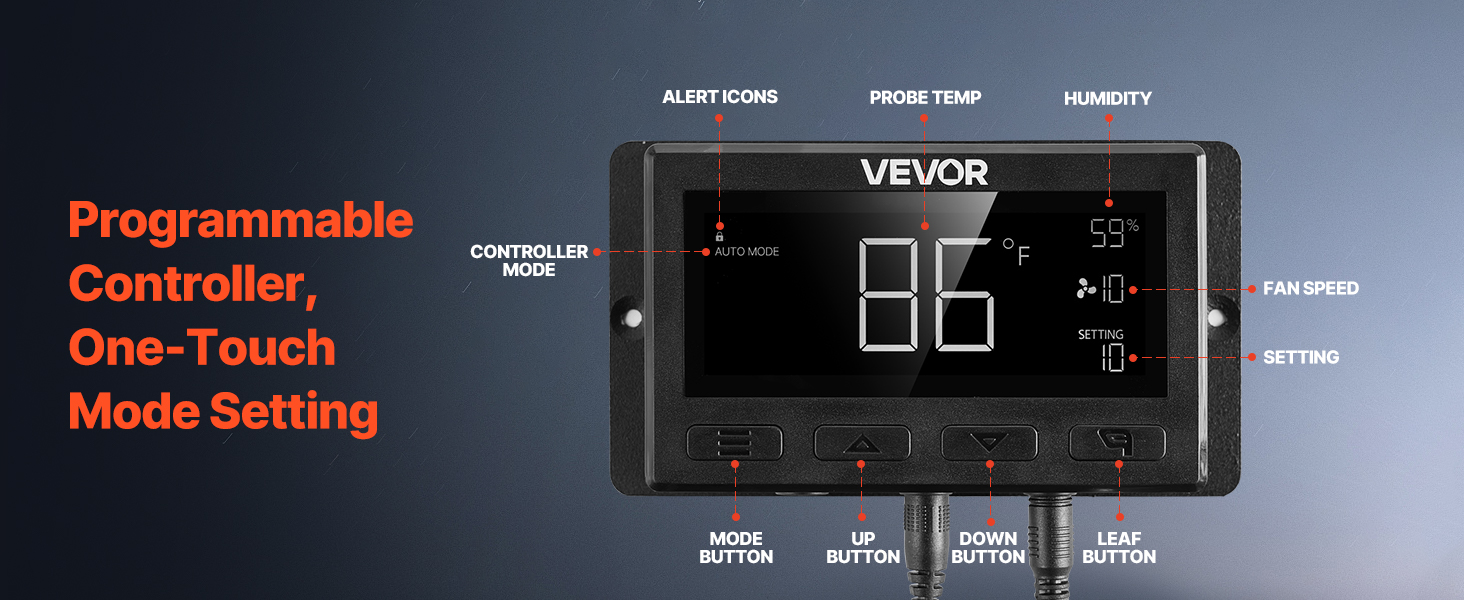 - Smart Programming: This fan features an intelligent controller with temperature and humidity triggers, offering up to 10 speed settings that automatically adjust to changing conditions. Multiple modes, timer and alarm, full control for any situation