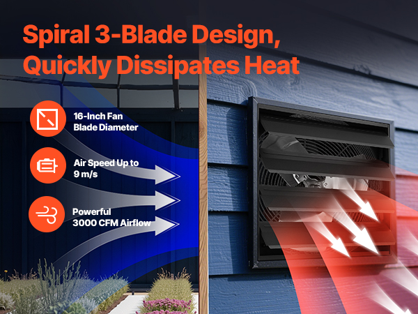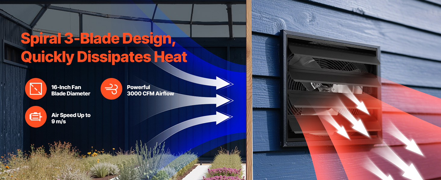 - Rapid Venting: This shutter exhaust fan delivers 2900 CFM to quickly expel stale air, floating dirt, heat, and smells, keeping indoor air fresh. Also works as a high-airflow exhaust fan for sheds and workshops