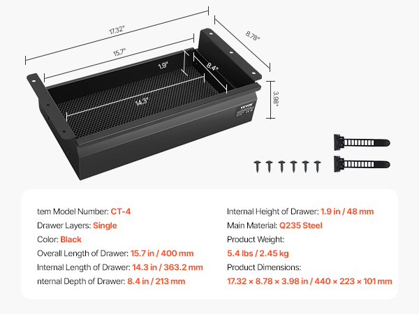 | Overall Length of Drawer | 15.7 in / 400 mm |