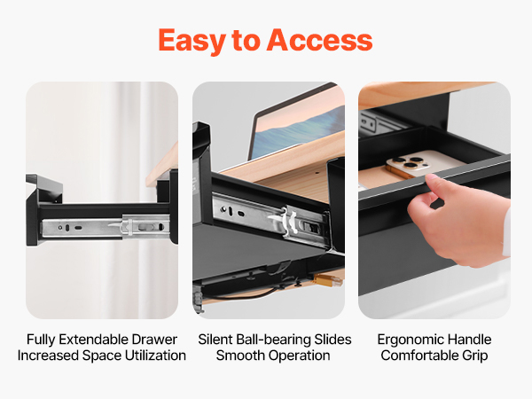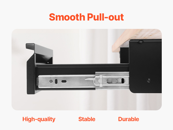 - Smooth & Silent Sliding: Pull the hidden handle and enjoy the smooth glide of this under table drawer. Equipped with two high-quality stainless steel ball-bearing tracks, it opens quietly and effortlessly, without any jerking or annoying noise. Fully extendable, this drawer makes accessing your items a breeze.