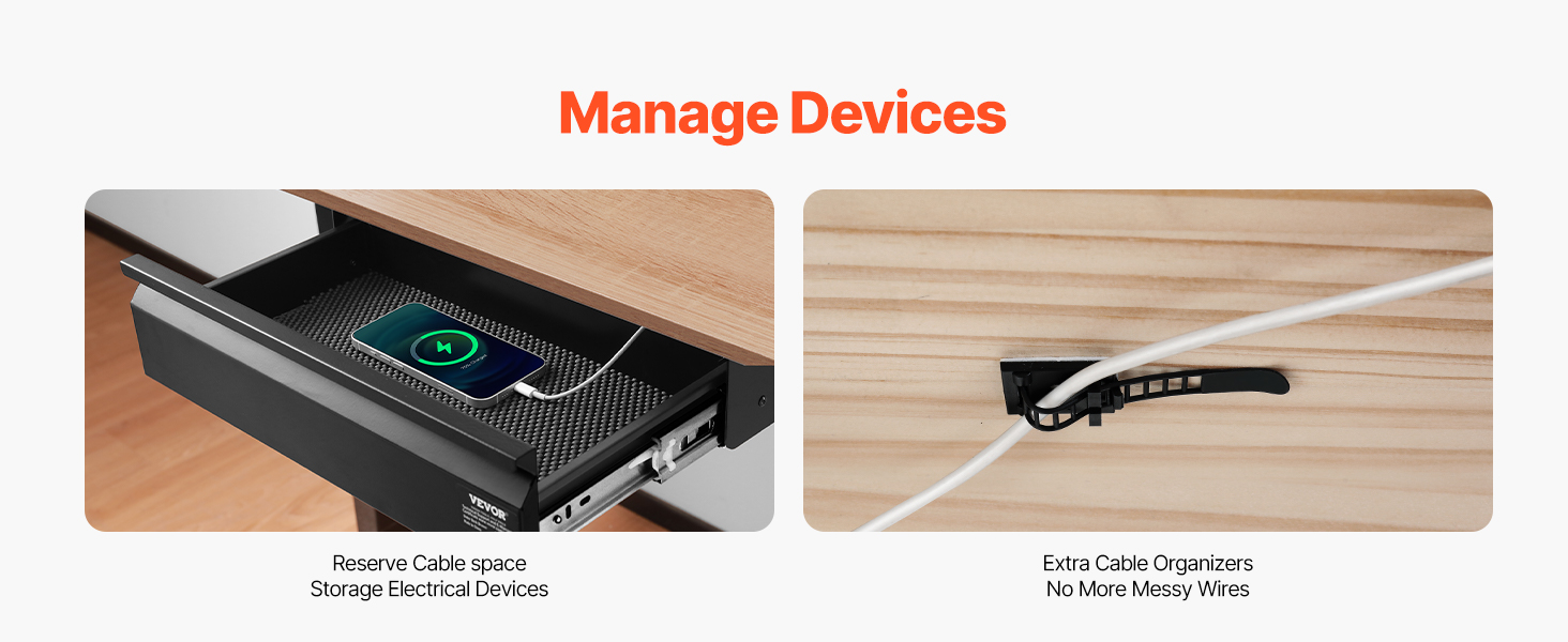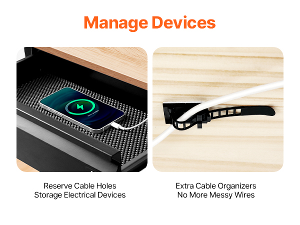 - Easy Device Connection: The pull-out drawer attachment features cable holes at the back, ideal for storing devices that need power. Keep your desk neat by placing devices inside and running cables through the hole. Plus, two cable organizers help secure cords under the desk, keeping your workspace tidy and organized.