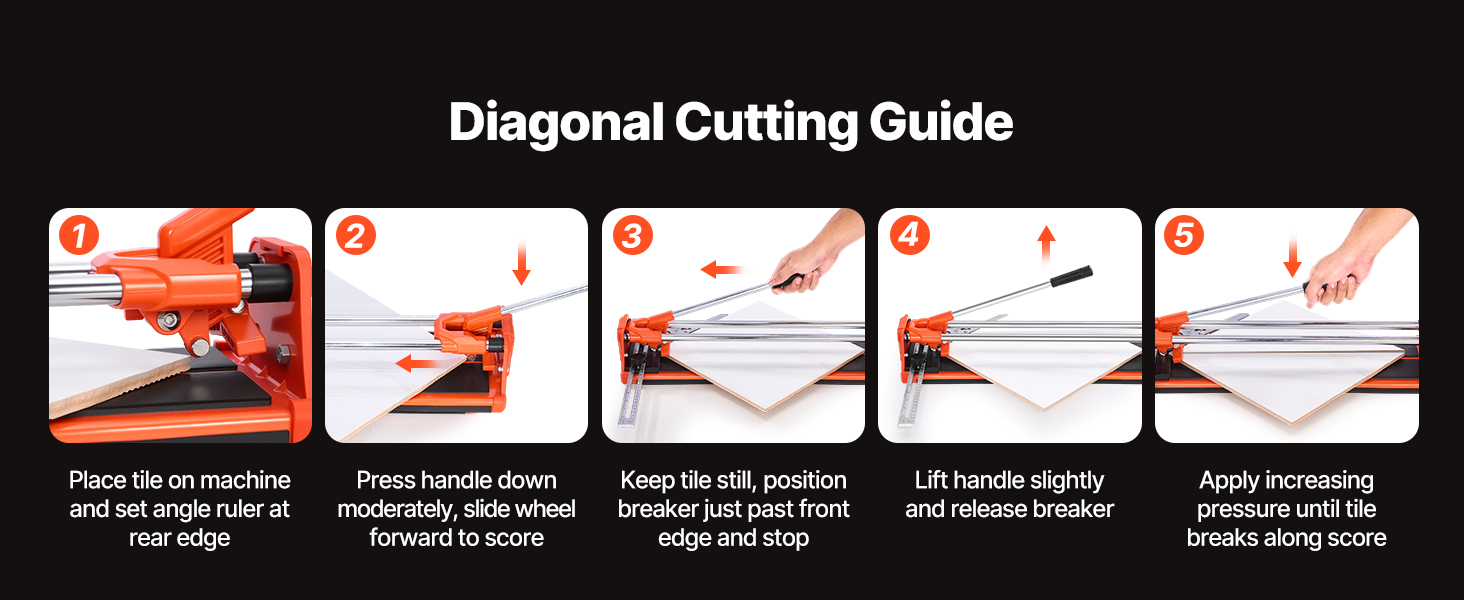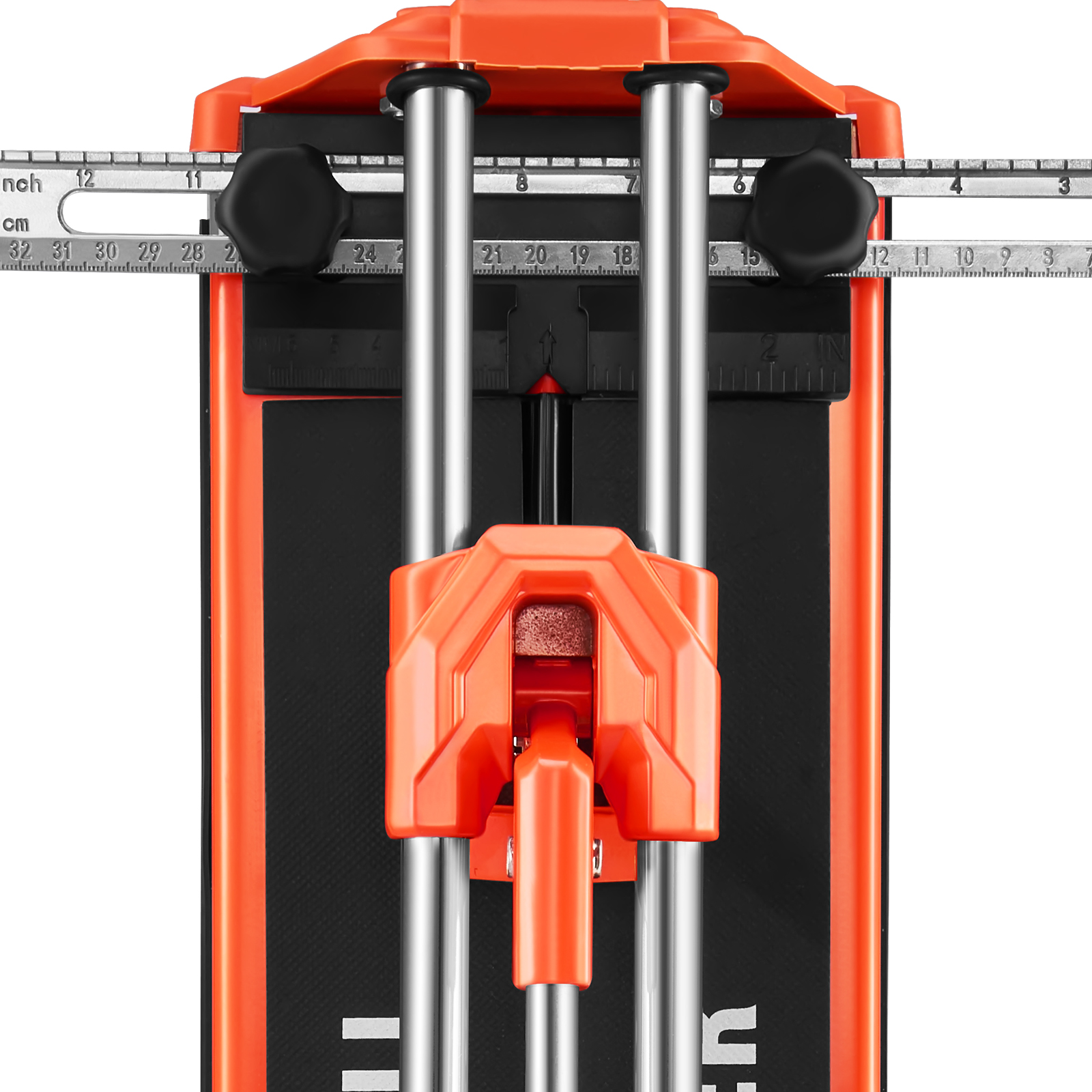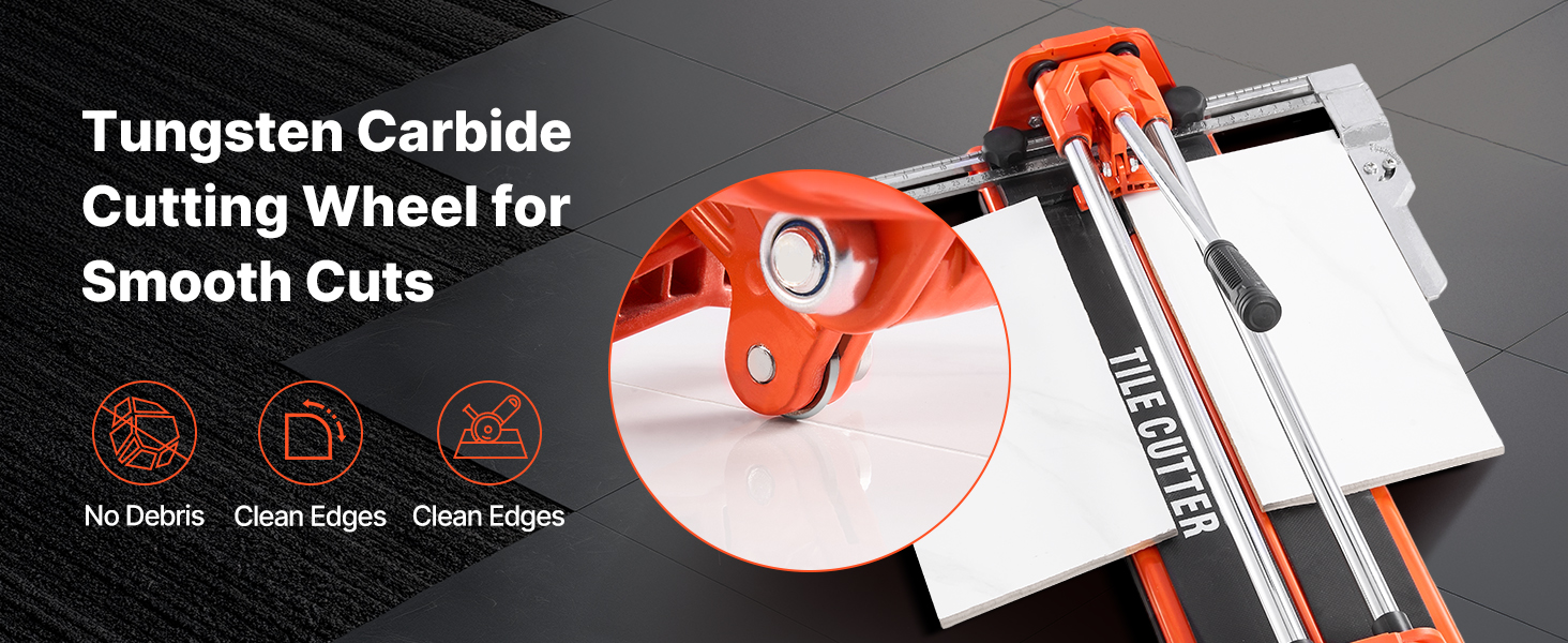 - Precise Cutting: Achieve accurate cuts with the tile cutter. The sliding head, featuring metal ridges and a ball bearing design, ensures smooth scoring for precise tile cutting. Equipped with a scale and angle rulers for accurate measurement and positioning.