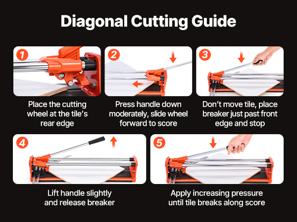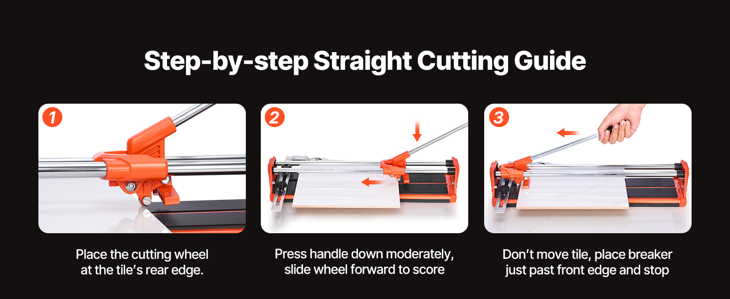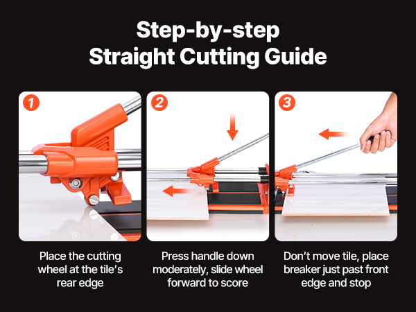- Sharp Cutting: The tile cutter is built for durability. The tough cutting wheel scores and breaks tiles effortlessly. Steel rails and a heavy-duty aluminum base ensure reliable performance for your tile laying and home renovation projects.