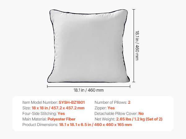 • 18 x 18 in Square Pillows: Two separate pillow inserts, set of 2, with great size, ideal for comfort and home decor. Can be used separately or together; easy to clean for quick replacement, keeping your space tidy and clean.