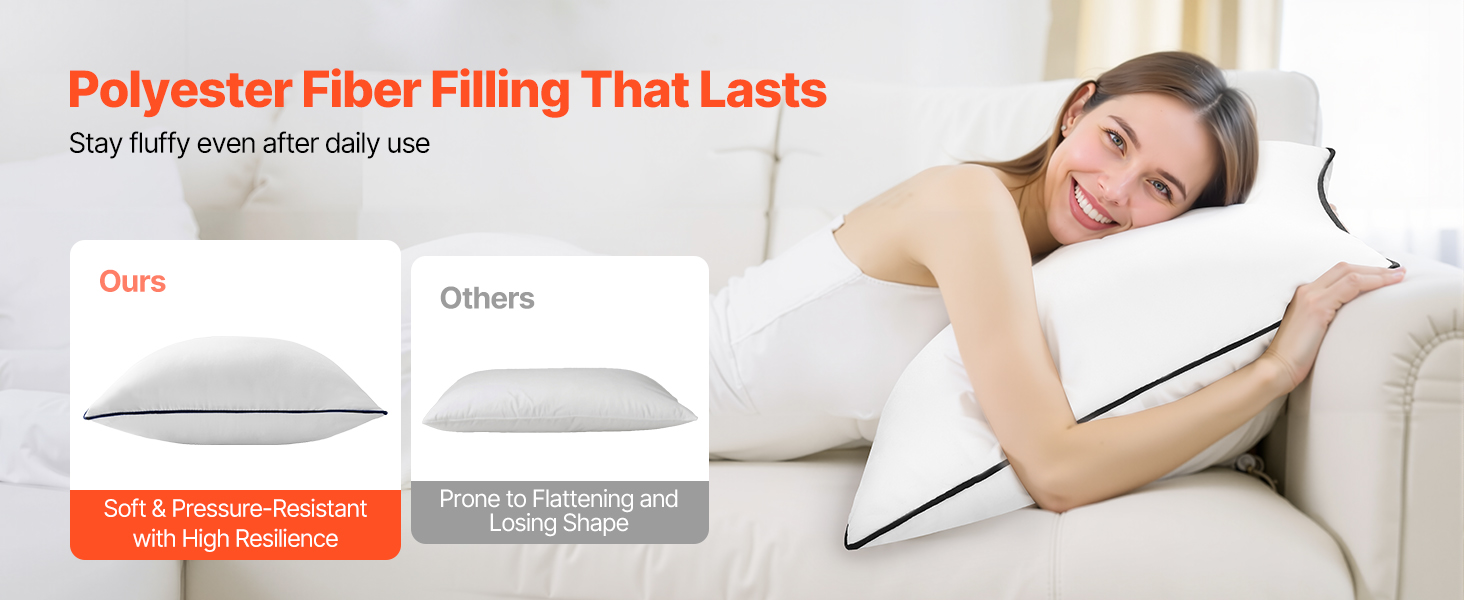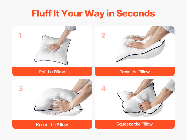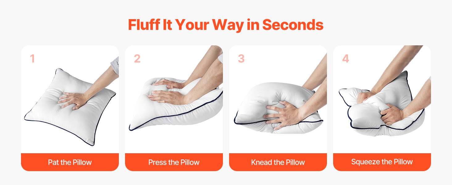 Simply follow the illustrated steps, you can just fluff, knead, and press the down alternative pillows regularly to maintain a soft and lofty feel. Easy to care for and quick to refresh, it helps ensure you enjoy cozy, comfortable sleep every night.