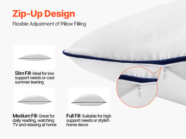 The square pillow inserts feature an easy-to-open design, allowing you to adjust the fill level to match your personal sleep style and comfort needs. Whether you prefer a high loft or a low-profile pillow, you can customize it anytime for a great fit.