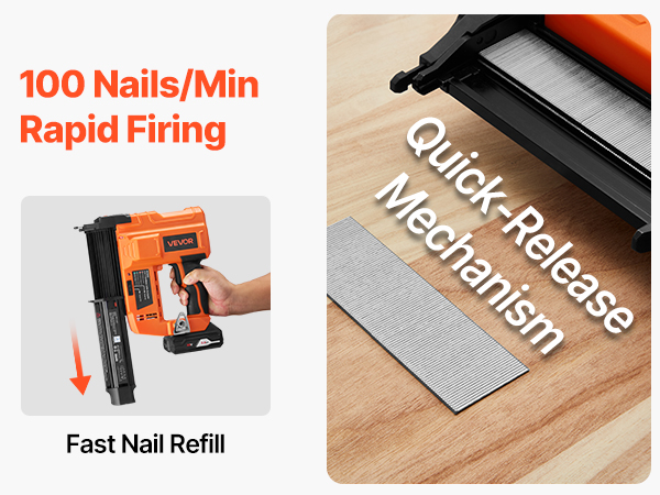 Our battery powered nail gun supports up to 100 nails/min firing rate, suitable for large projects requiring both speed and precision. Its continuous firing mode ensures smooth, uninterrupted performance.