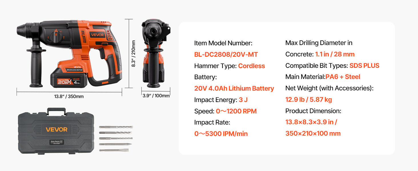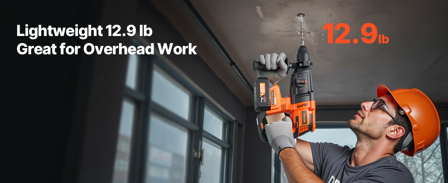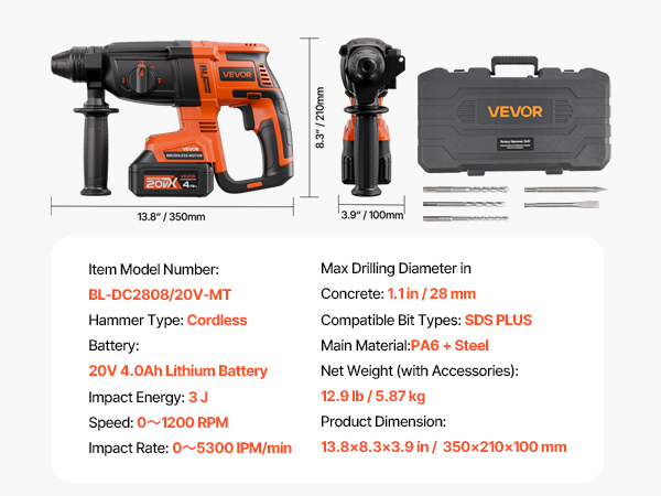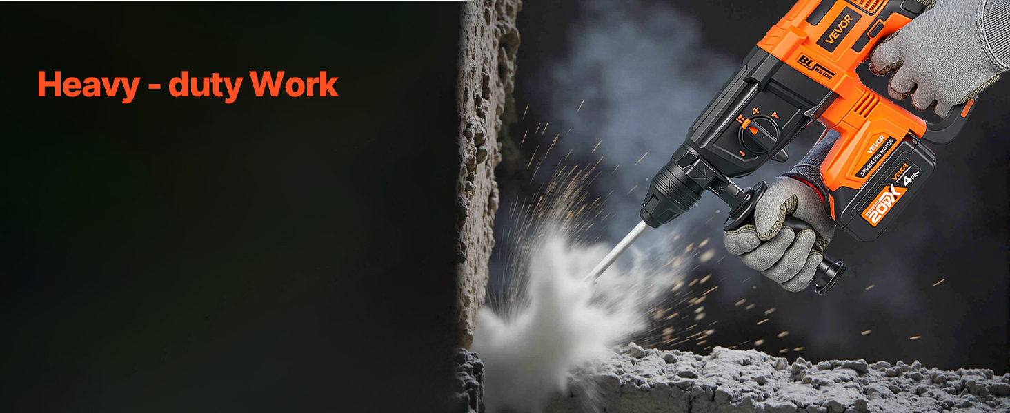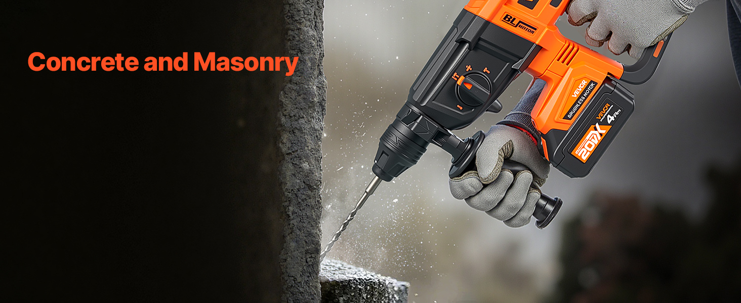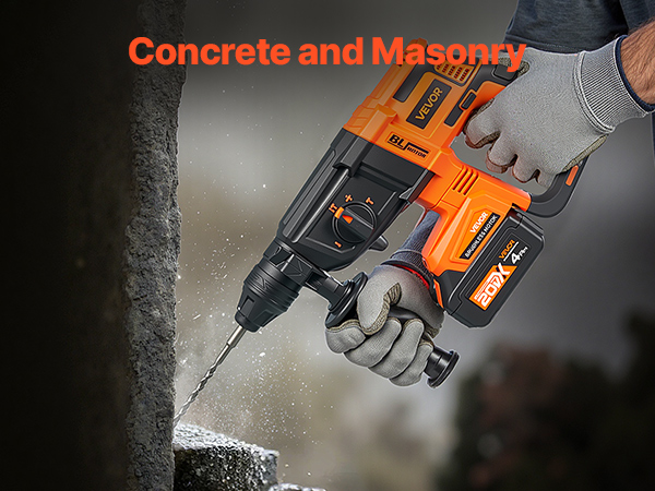 - High-Speed System: Equipped with a high-efficiency system, this hammer drills for concrete reaches up to 0–1200 RPM and a max impact rate of 0–5300 BPM. Smash through tough surfaces with ease—no job is too big