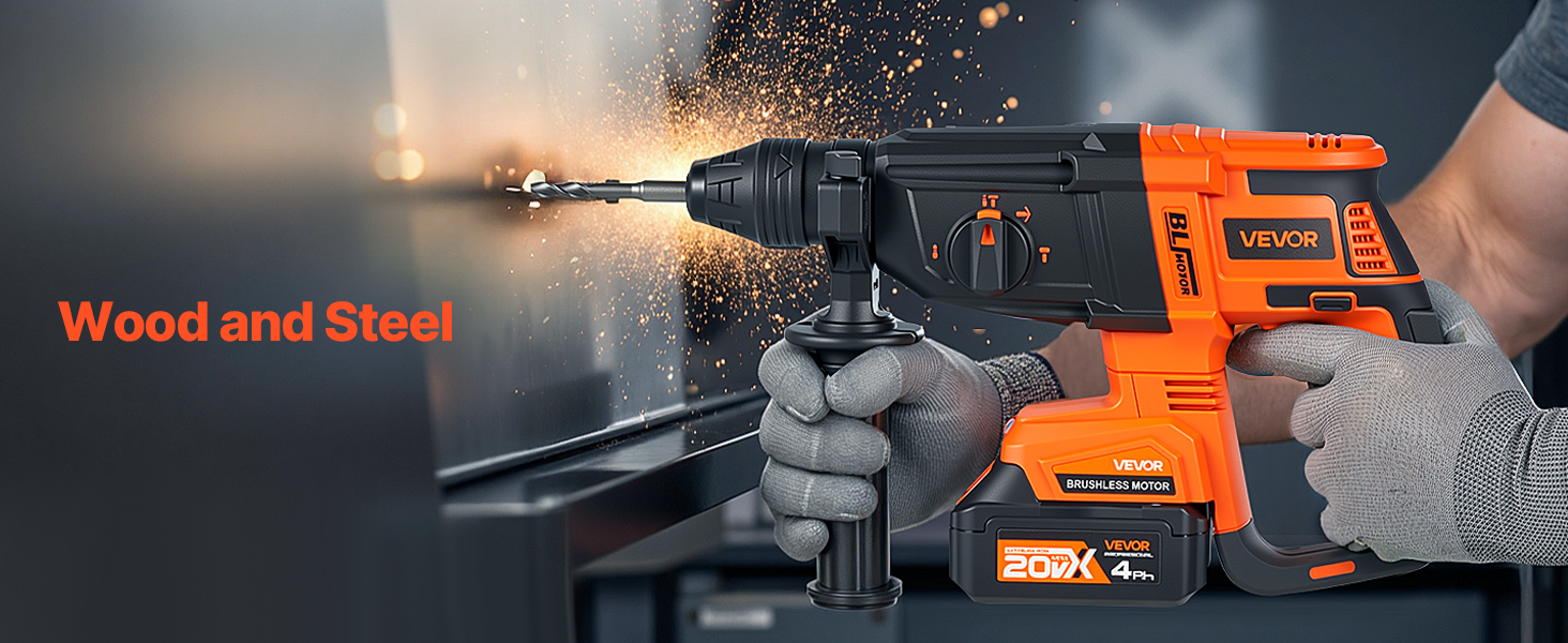 Equipped with a high-capacity 4Ah battery, this rotary hammer drill delivers extended runtime, reducing the hassle of frequent charging and helping you work more efficiently on the job site.