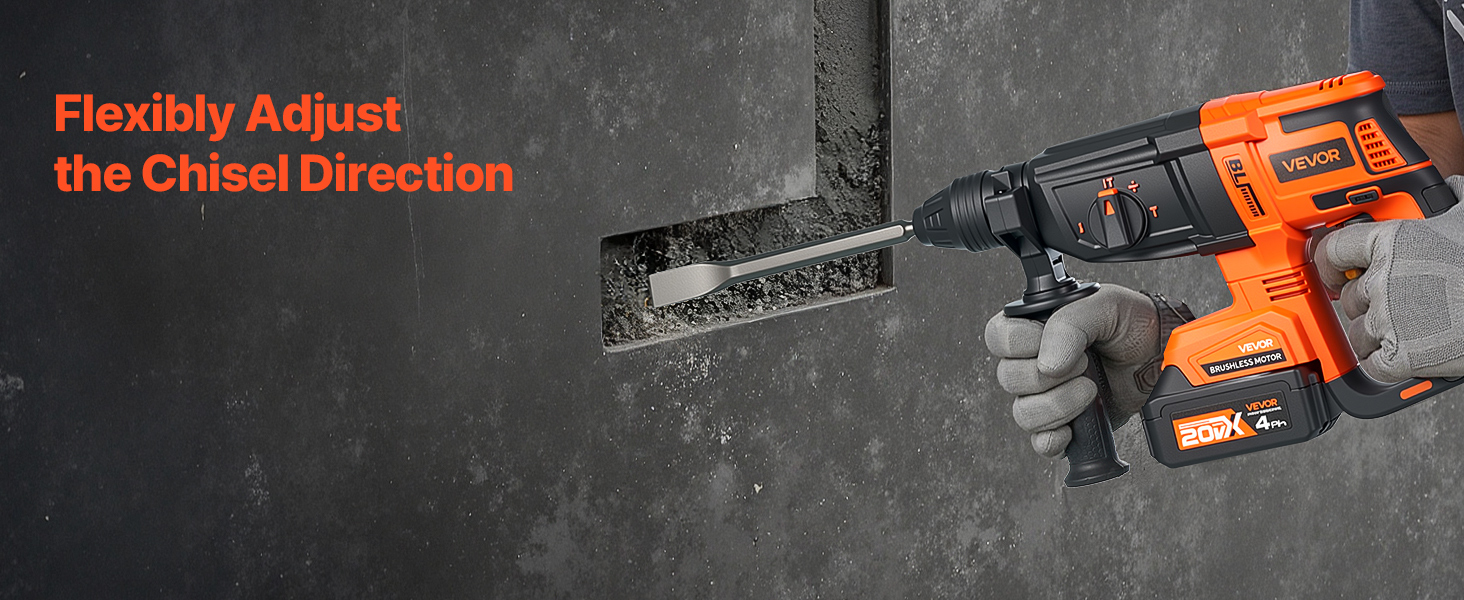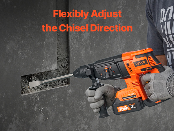 - 4-in-1 Functionality: Featuring four easily switchable modes—drill only (for wood and steel), hammer only (for concrete and brick), hammer drill (for heavy-duty tasks), and chisel adjustment—this cordless hammer drill adapts to your project needs. Dual switch buttons extend the tool's lifespan compared to single-switch designs, giving you a more reliable experience