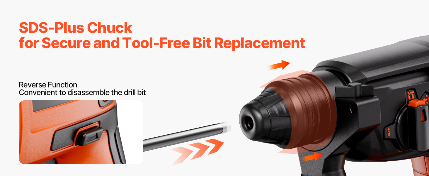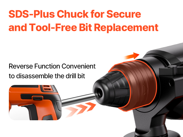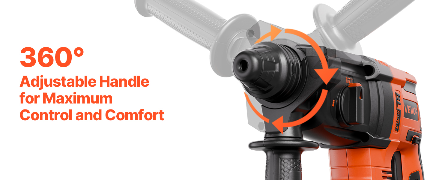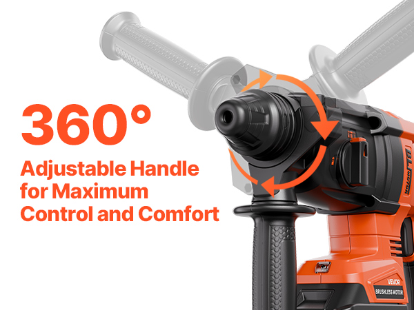 - Engineered for Superior Control: A 360° adjustable handle offers enhanced comfort, reduced fatigue, and better control during extended use. The SDS-Plus chuck allows for quick and secure bit changes to keep your projects moving forward. A carefully designed heat dissipation structure extends tool life. Get ready to work with confidence! The reverse function provides precise bit starts and easy removal of fasteners