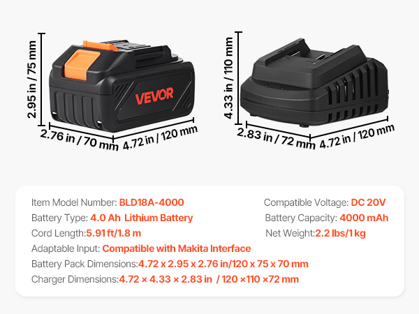 - Compatible with Makita Interface: This charger comes with a convenient 5.91 ft power cord for easy use. Its compact design (4.72 x 2.95 x 2.76 in/120 x 110 x 72 mm) lets you store and carry it with ease, making it a breeze for on-the-go charging