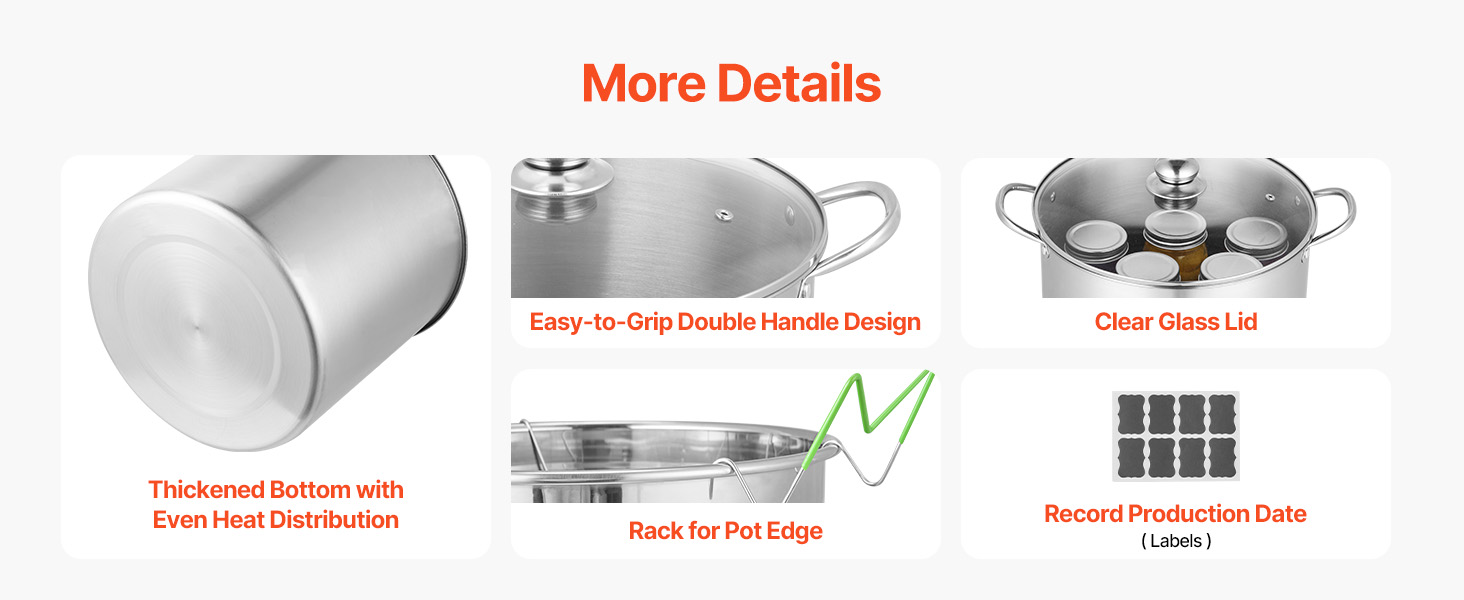 The large-capacity canning pot is not only perfect for home canning, but also ideal for making soups, stews, or cooking large batches of food, catering to a variety of family needs. Whether you’re a beginner or an experienced home cook, it’s a great choice for everyone.