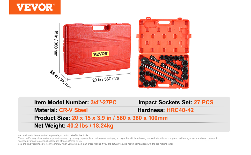 - Compact & Portable: The 3/4 inch impact socket set includes a steel ratchet and a sturdy storage case for organization and transport, making this a great group of sockets for mechanics.