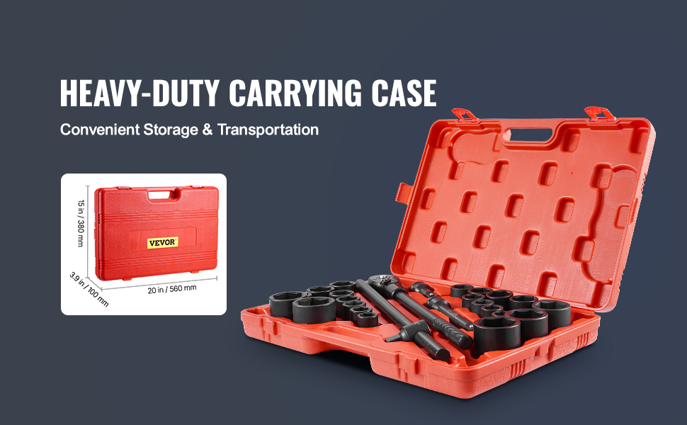 This socket set is ideal for removing and installing wheel lug nuts, particularly suitable for most trucks, RVs, and other heavy-duty vehicles.