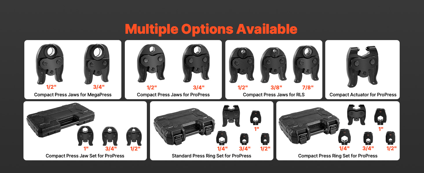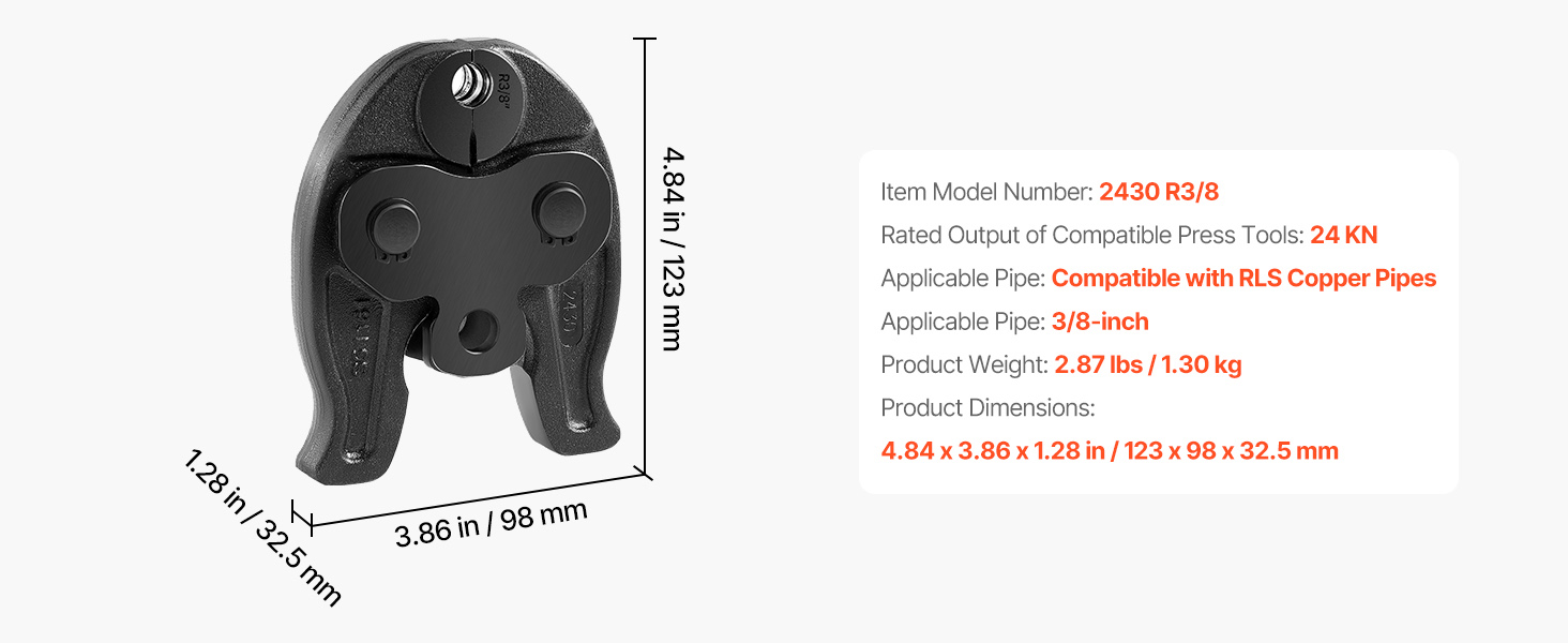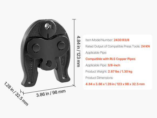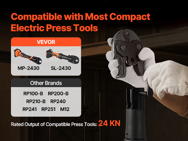 - Compatibility: This R3/8" press jaw is compatible with VEVOR 24KN compact electric press tools (MP-2430, SL-2430) and other brands (RP100-B, RP200-B, RP210-B, RP240, RP241, RP251, M12)