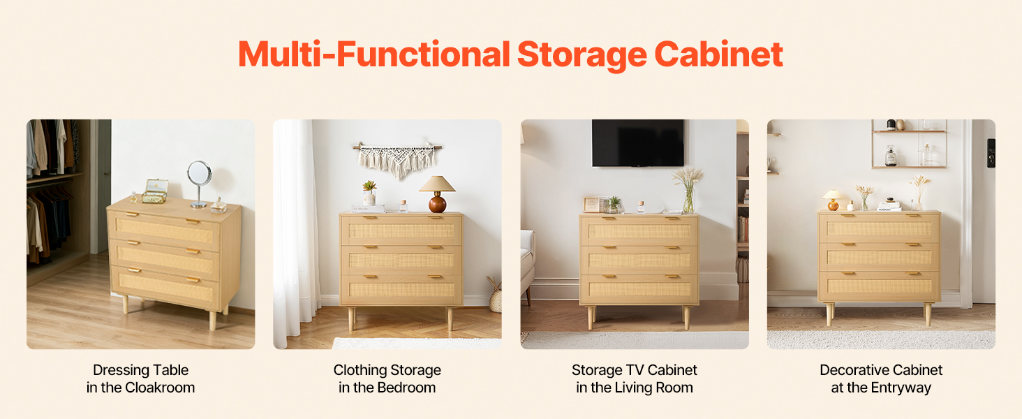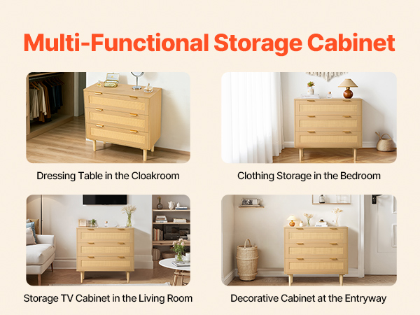 This wicker dressers for bedroom provides you with a great storage solution. It can be used as a TV cabinet, storage cabinet, entrance cabinet, etc, suitable for various occasions. It is a storage cabinet as well as a decorative cabinet.