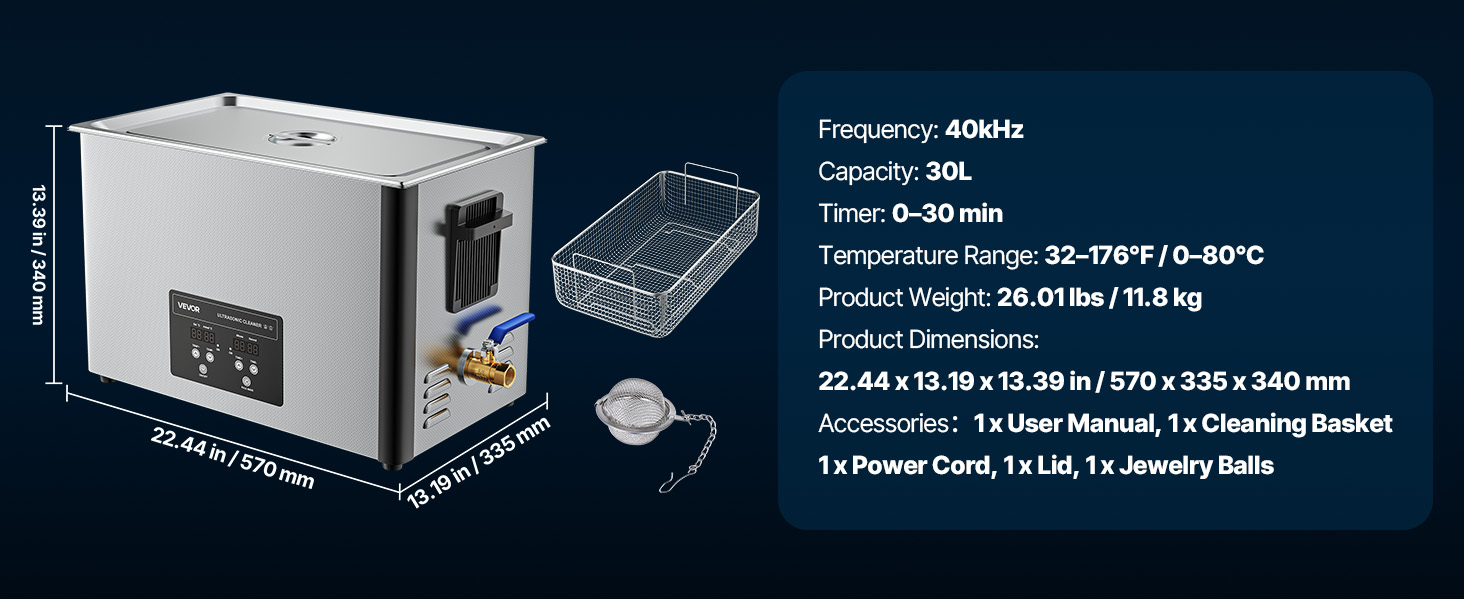 This ultrasonic cleaner seems to be a really good quality product. I’ve never owned one before, but have many things that could be cleaned with it (jewelry, coins, tools, etc). This is one of the smaller models that Vevor makes, but I found the capacity to be perfect for most household items I have to clean. Everything fit well in the provided basket. The directions are clear, and the machine is easy to use. The heat setting works well to ensure the water is hot for better cleaning. My only downside is the noise. It is so loud, and high pitched. The dog did not like it at all. Would be good to just use in the garage. Overall, it works well, and I think it’s a good value product.