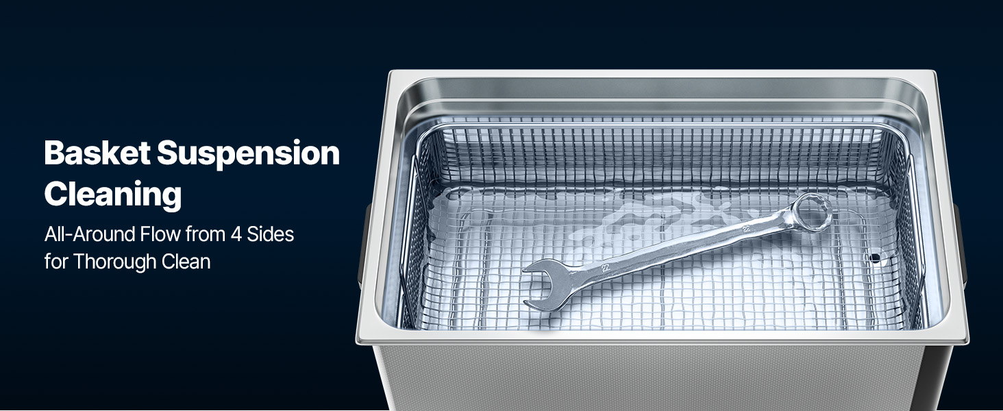 - Premium Quality Design: The sonic cleaner features a corrosion-resistant stainless steel basket and inner tank, while the basket avoids scratches. Upgraded handle makes full-tank transport easy and the digital display ensures simple, precise operation