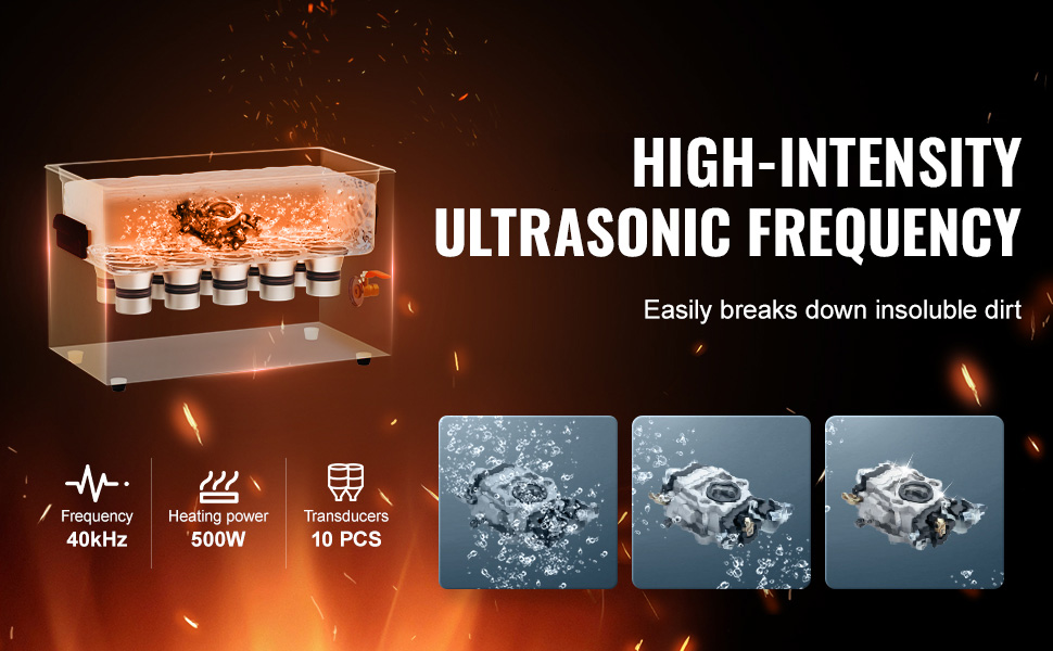 - Powerful Cleaning Performance: The VEVOR Ultrasonic Cleaner operates at an ultra-high frequency of 40kHz, generating millions of tiny bubbles that explode in water, releasing strong cleaning energy. This energy penetrates every crevice, thoroughly removing stubborn stains from delicate parts, ensuring no area is left uncleaned.