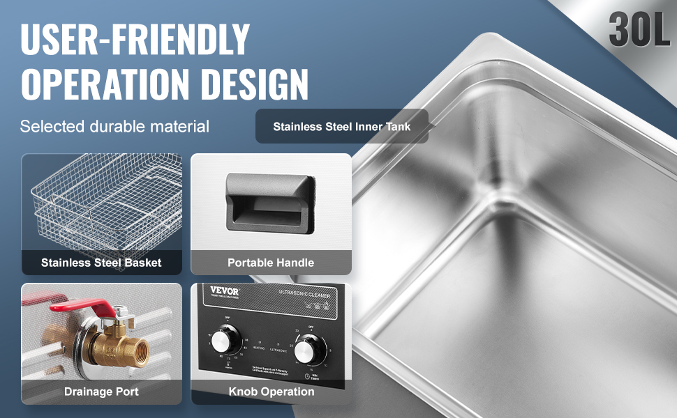 Crafted with high-quality 304 stainless steel tanks, this ultrasonic cleaner machine ensures lasting durability while providing consistent cleaning results, offering you a long-term user experience.