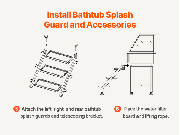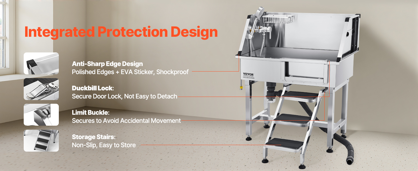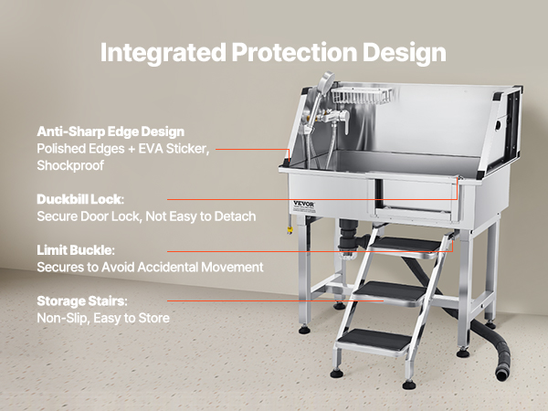 - Anti-Slip and Leak-Proof: The upgraded sealing system and anti-slip stairs with limit holes ensure stability, preventing wobbling and slipping when pets enter and exit. The drainage kit keeps odors at bay, ensuring zero water accumulation and no leaks during bath time.