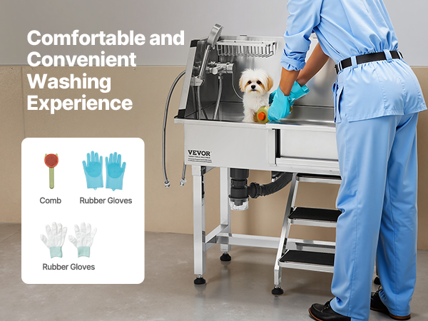 - More Comfortable Grooming: The hot and cold dual-control faucets and three water pressure settings provide versatility. The aluminum alloy soap holder keeps cleaning supplies handy, making pet grooming more convenient.