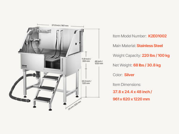 The Vevor 38in Stainless Steel Dog Washing Station is an absolute game-changer! I wasn’t sure if our 40 lb heeler would fit, but she fits perfectly—and it also works great for our smaller poodles. The station was fairly easy to assemble; however, we did need to use different hoses since our home’s water valve connections weren’t compatible with the ones provided. Other than that, we had zero issues with assembly, no leaks during bath time, and found it to be extremely convenient. Highly recommend!