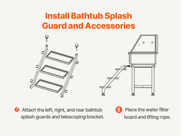 - Anti-Slip and Leak-Proof: The upgraded sealing system and anti-slip stairs with limit holes ensure stability, avoiding wobbling and slipping when pets enter and exit. The drainage kit keeps smells at bay, ensuring a reliable experience during bath time