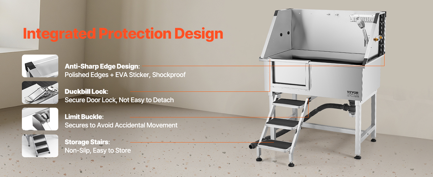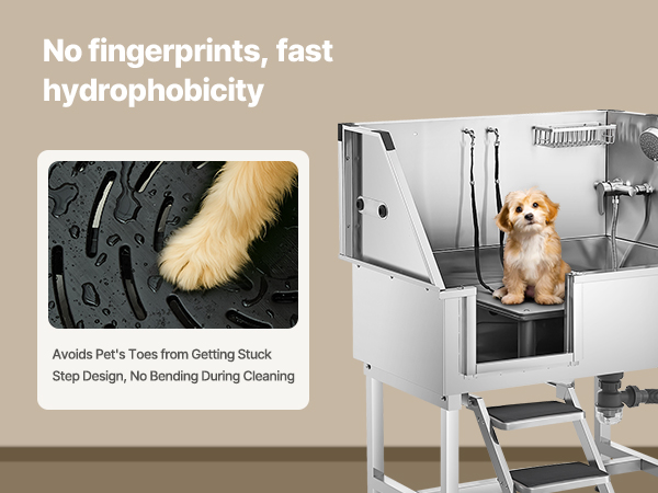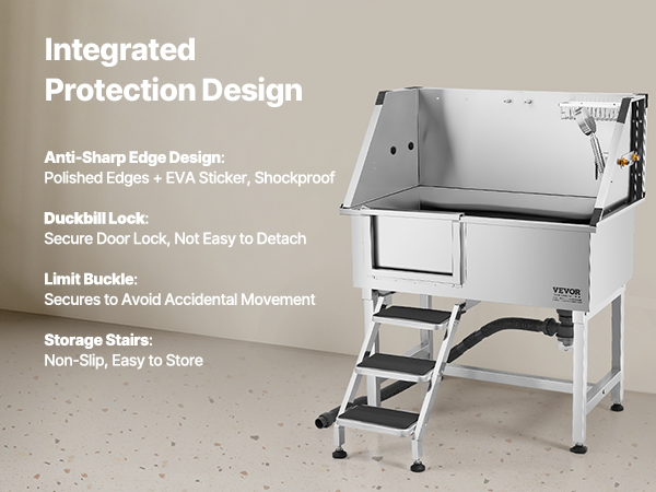 - Anti-Slip and Leak-Proof: The upgraded sealing system and anti-slip stairs with limit holes ensure stability, avoiding wobbling and slipping when pets enter and exit. The drainage kit keeps smells at bay, ensuring a reliable experience during bath time