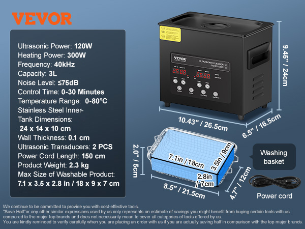 - Versatile Use: Ideal for cleaning jewelry, automotive parts, eyewear, and more. Whether you're a professional or an everyday user, the VEVOR Ultrasonic Cleaner is a reliable tool for all your cleaning needs.
