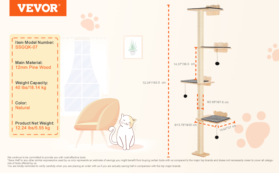 Tolle Qualität, toller Kratzbaum, sieht mega aus! Einfach zusammen zubauen und ein Werkzeug ist auch mit dabei. Das ist schon mein 2. Artikel von VEVOR und ich bin mehr als zufrieden! Gerne wieder 😸