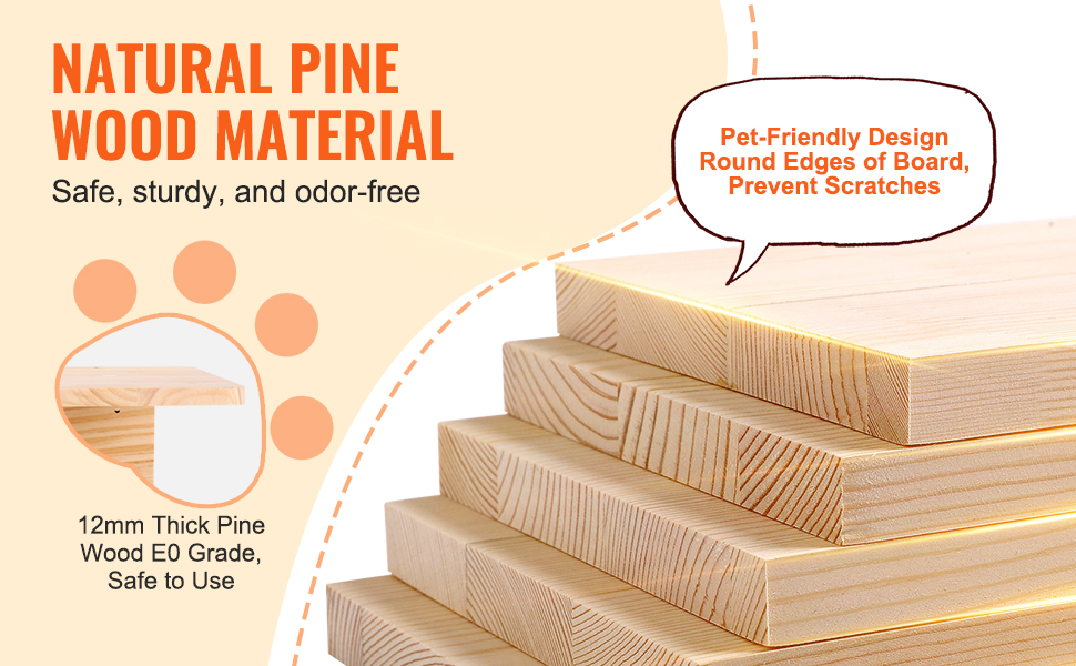 - Comfortable and Durable Material: Constructed from E0-grade pine wood, this wall-mounted cat shelf is sturdy and durable, supporting up to 40 lbs (18.14 kg). The natural pine wood is non-toxic and odorless, ensuring safe climbing and play for cats. The platform surface is covered with a plush pad for slip-resistance and softness, protecting your cat's paws.