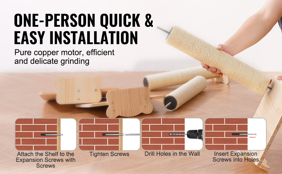 - Comprehensive Accessories: The cat wall furniture set includes metal screws, expansion tubes, butterfly anchors, a screwdriver, a T-shaped hex screwdriver, and an installation diagram for hassle-free mounting on various wall types.