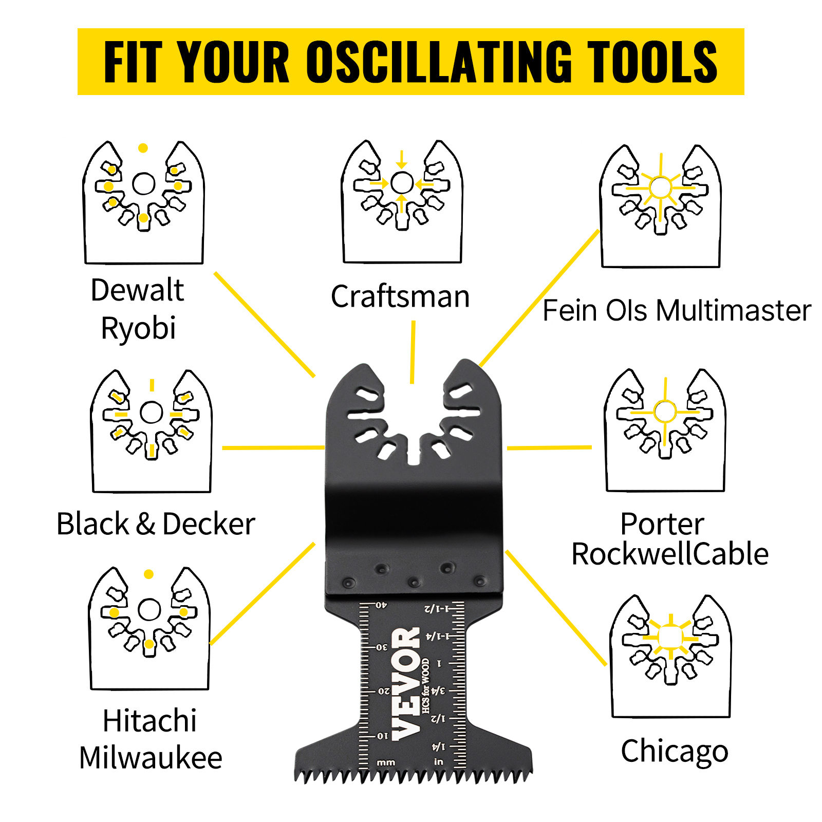 • Apply to Your Brands: Our oscillating saw blades are compatible with most of your favorite oscillating tool brands, such as Fein Multimaster, Porter Rockwell Cable, Ryobi, Milwaukee, Hitachi, Black & Decker, Chicago, Craftsman, and Dewalt. Connect and get to experience precision like never before.