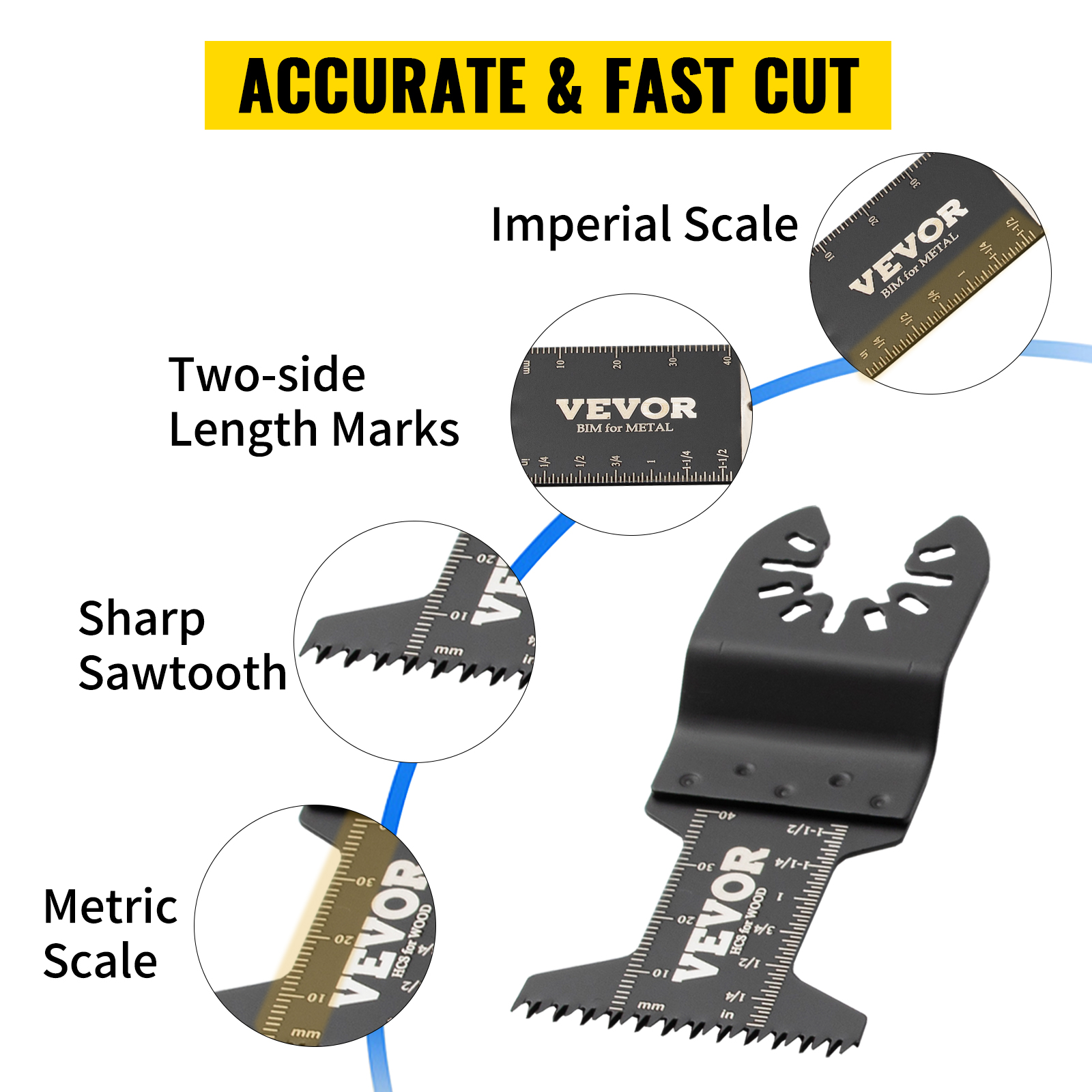 • Never Miss a Cut: The built-in length markers on both sides are marked with metric and imperial size measurements. The marks ensure accurate cuts easily and quickly. These multitool blades can meet a variety of needs and can be used in workshops, households, or other places.
