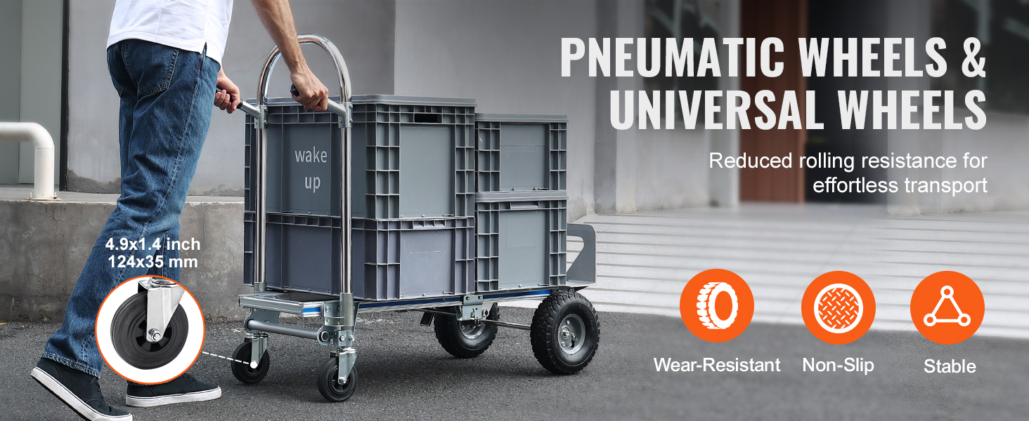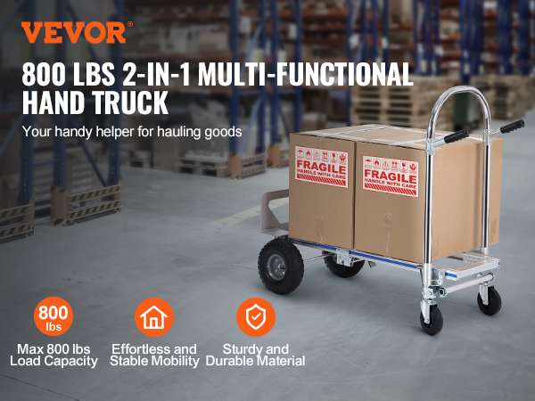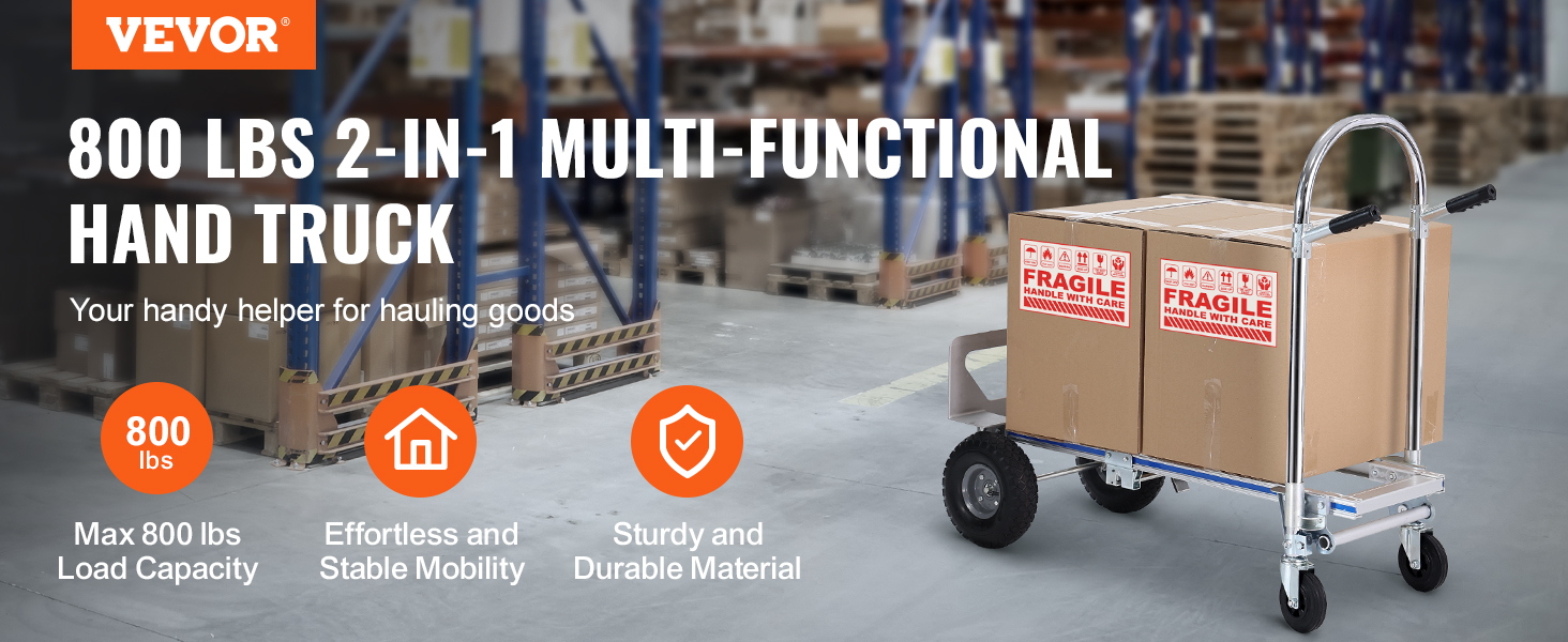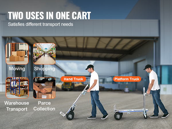 - Two-in-One Flexibility: Straight up or laid flat—how do you roll? This ergonomic convertible hand truck transforms into two different carts in seconds. Need more carrying options? Our non-slip handle's got you covered! Choose the mode that best suits your needs for moving goods.