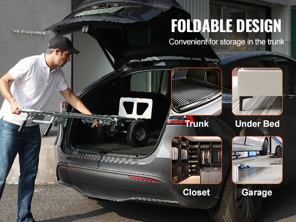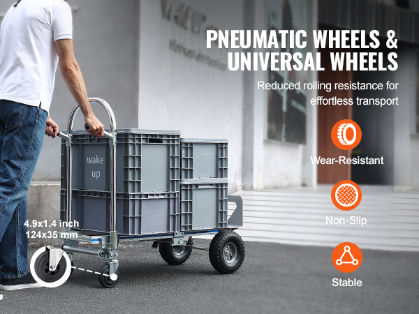 - Snap, Fold, Store: Done for the day? Our wheels pop off in a jiffy. Fold it flat and slide it under the bed or in the garage. This heavy duty hand truck is perfect for indoor and outdoor loading or moving tasks, such as in warehouses, gardens, construction sites, supermarkets, and offices.